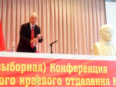 - Я прибыл в краевой Дом ветеранов на ул. Л.Толстого, где и должна была проходить конференция коммунистов, за несколько минут до ее начала: примерно, в 10.50. За два дня мне звонили с крайкома и приглашали на конференцию. Свободно прошел в зал, сел на второй ряд и стал ждать начала. Достал фотоаппарат и сделал несколько кадров. Это увидел и.о. 1-го секретаря крайкома КПРФ Александр Громов, который находился уже на трибуне, и метнулся из зала мимо, даже не поздоровавшись, хотя прекрасно меня знает.