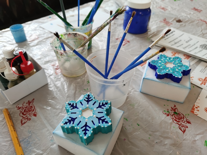 Отметим, что кроме концерта зрители смогли посмотреть и различные мастер-классы. Для участия ребятам надо было сделать маленькое пожертвование в денежную коробочку. Ребята не отказывались, ведь они хотели не только принять участие, но и помочь Еве в ее страшной борьбе. В коридоре перед зрительным залом ребята учились делать коробочки из бумаги, красили новогодние снежинки, играли в беспроигрышную лотерею и рисовали аквагрим на лице.