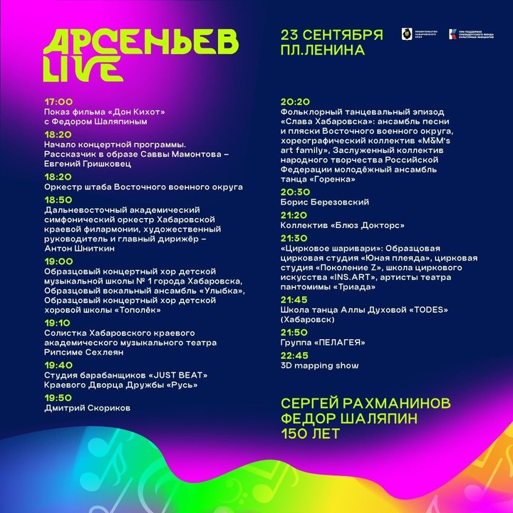 Вот уже во второй раз на площади Ленина в Хабаровске пройдет фестиваль «Арсеньев Live». 23 сентября хабаровчан и гостей города ждет уникальное шоу специально для которого написаны новые музыкальные треки.