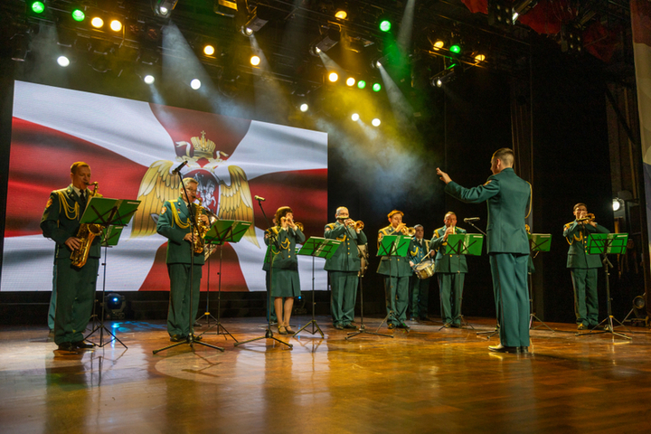 На сцене выступали не только профессиональные военные коллективы, но и творческие детские коллективы. Перед зрителями выступили военный оркестр управления Росгвардии по Хабаровскому краю, солисты ансамбля песни и пляски «Амур» войск национальной гвардии Российской Федерации и творческие коллективы Краевого Дворца дружбы «Русь». Музыканты исполнили «Марш Преображенского полка», марш «Молодость» Виктора Шепелева, Кюсса и композиции «Служить России», «Мы - армия народа».