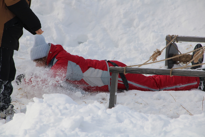 Первое, что ждет всех желающих – это курс молодого бойца. Прыгая или бегая через небольшие препятствия, участники доказывали свою спортивную подготовку, и что они готовы к новым свершениям. Одно из препятствий предполагало, что надо ползти под ним, и волонтеры разрешали взрослым пройти сверху. Но не все соглашались на такую поблажку и с удовольствием ползли по мягкому снегу.
