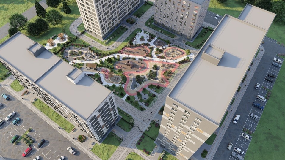 Пешеходный бульвар длиной более километра объединит весь жилой квартал, это главная особенность проекта.