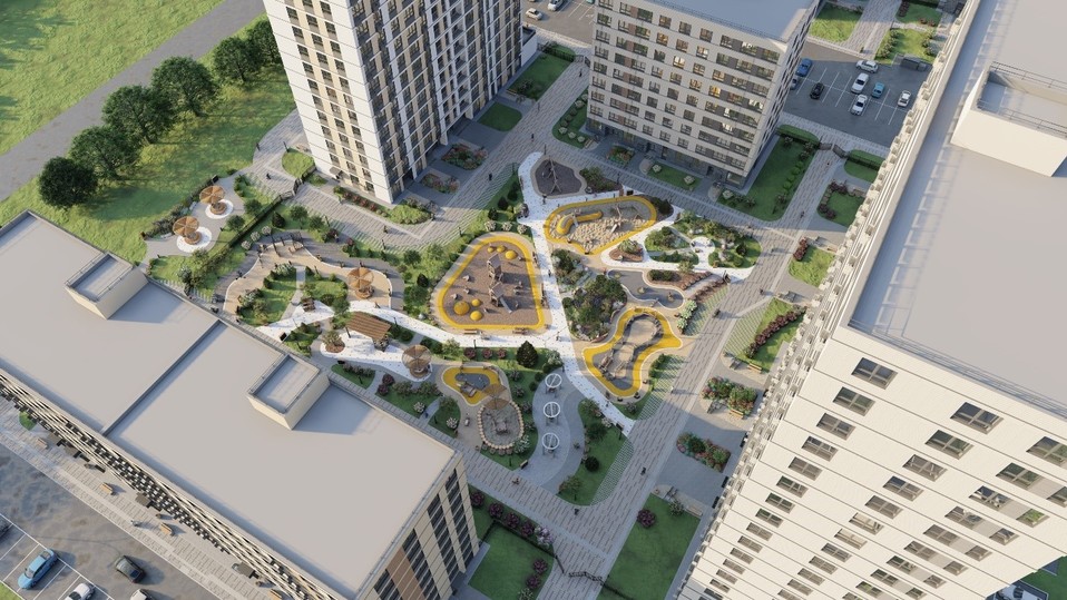 Переменная этажность домов (9, 16 и 20 этажей) и комфортная плотность застройки обеспечат хорошее естественное освещение квартир и обилие солнечного света во дворах.