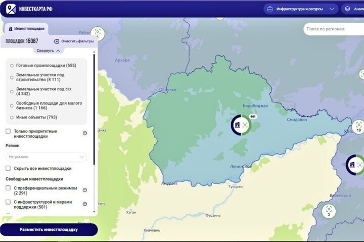 На спецкарте России Еврейская автономия презентует свой инвестиционный потенциал