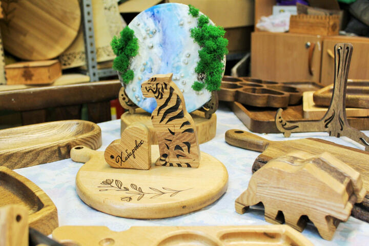 Среди участников – бренд, выпускающий деревянную посуду и сувениры. Три года назад его основательница открыла цех благодаря обучению в центре «Мой бизнес» и субсидии.