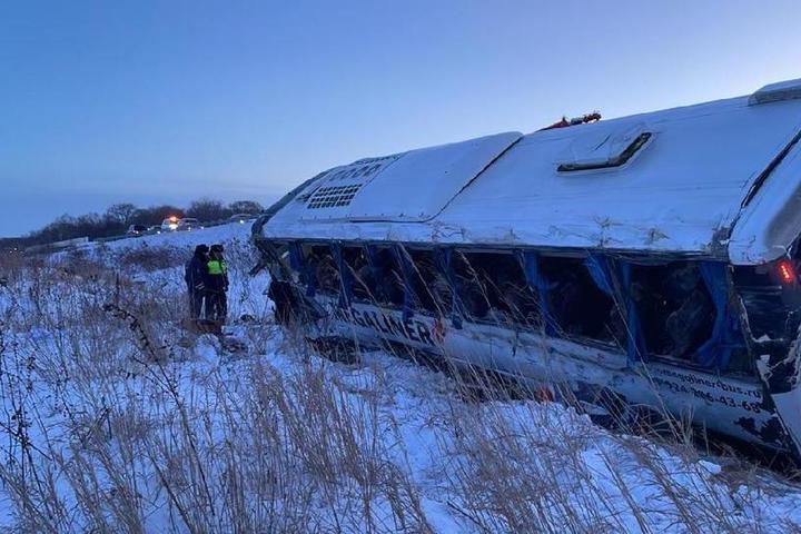 Как сообщили в пресс-службе прокуратуры Хабаровского края, идет проверка по факту дорожно-транспортного происшествия с пассажирским автобусом. Инцидент случился около 06:30 утра 16 декабря в девяти километрах от поворота к селу Троицкое Нанайского района. По предварительным данным, в автобусе находились сотрудники геолого-разведочной организации. Водитель не справился с управлением на повороте, из-за чего автобус съехал в кювет и упал на бок.