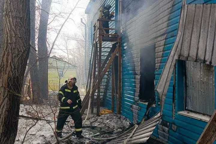 В Хабаровске горит деревянный барак на улице Руднева. По сообщениям местных пабликов, в нем любили собираться люди без определенного места жительства.