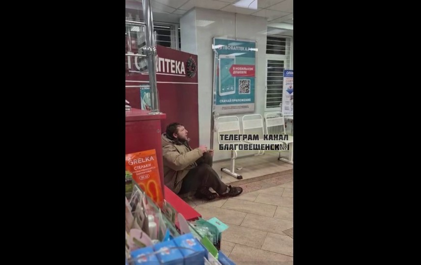 Скрывался от невидимых людей: мужчина устроил переполох в аптеке Благовещенска. Фото: телеграм-канал «Благовещенск№1»