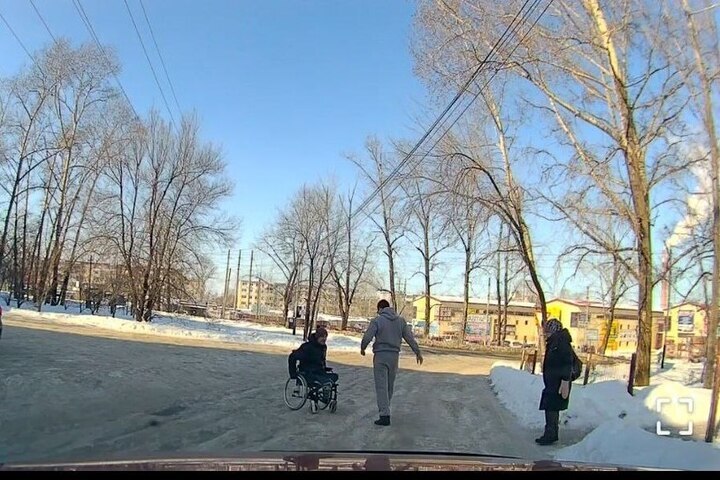 Неравнодушные хабаровчане поделились видео, где видно, что инвалид не смог проехать по одной из городских дорог. Его коляска встала посередине, создав помеху для машины. Водитель не растерялся, вышел и помог мужчине добраться до пешеходной зоны.