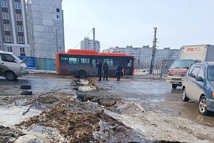 В Хабаровске на улице Ворошилова обвалилась дорога.