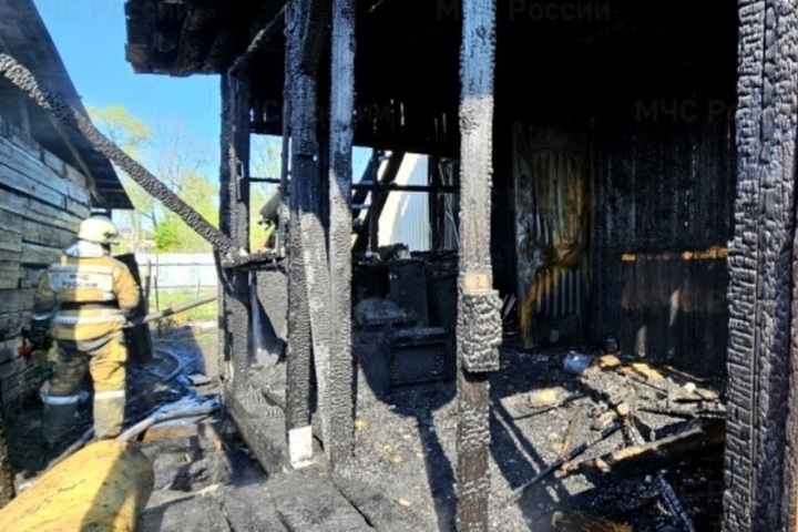 В селе Птичник Биробиджанского района случился пожар, в котором пострадали животные. Очаг возгорания находился в бане, пламя перекинулось на сарай, в котором находились собака и кошка, курица с цыплятами и утята. Владелица строений заметила дым, пыталась потушить огонь сама, но не справилась и вызвала пожарных.