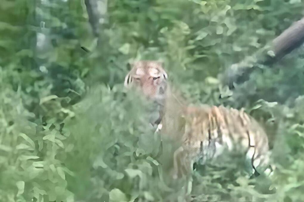 Жители Ванинского района сообщили, что в 5-10 км от моста через реку Коппи встретили тигра. Судя по видео, опубликованному в телеграм-канале “Сводка.Хабаровск”, хищника взволновала встреча с мимо проезжающим автомобилем. Он встал и убежал в лес.