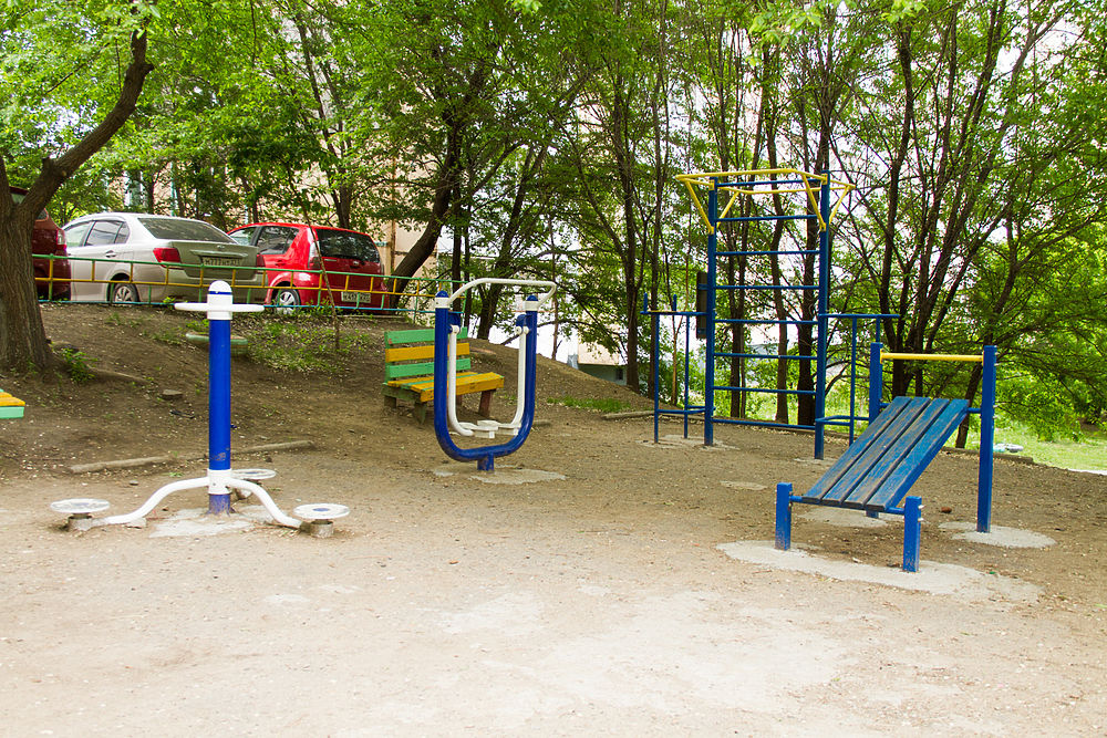 Комфортный и зелёный уголок на Трёхгорной, 60 привлекает людей даже из близлежащих домов. На радость детворе здесь установлена самая современная детская игровая площадка, качели, карусели, песочница и лавочки, на которых отдыхают мамы, приглядывая за своими детишками.