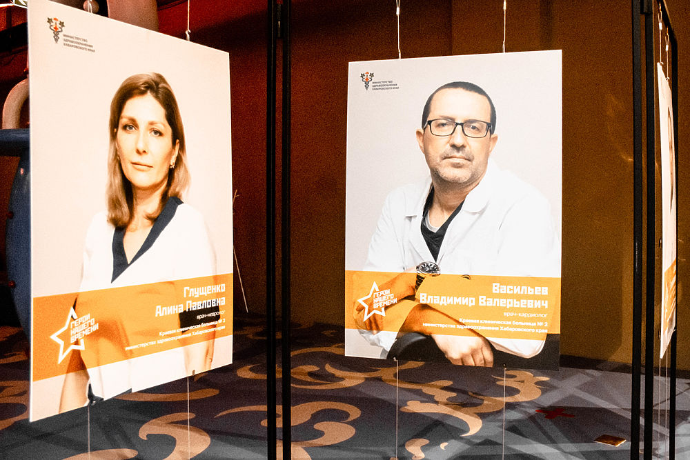 На стендах представлен 51 портрет медицинских работников, которые ведут борьбу с коронавирусной инфекцией. Это врачи, медсестры, младший медицинский персонал. По словам Евгения Никонова, заместителя председателя правительства Хабаровского края по социальным вопросам, это лишь малая толика той благодарности, которую хочется выразить всем медикам за их тяжелый труд и вклад в стабилизацию эпидемиологической ситуации в Хабаровском крае.