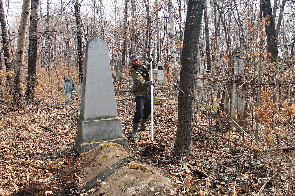 Биробиджанский кузнец и блогер Георгий Нацвлишвили (он же - Гиви) несколько лет бьет тревогу по поводу разрушения старого (еврейского) кладбища в столице ЕАО. На этом погосте захоронены сотни первостроителей столицы Еврейской автономной области и ветеранов Первой мировой и Великой Отечественной войн, но бюджетных средств на содержание кладбища, которое сейчас не эксплуатируется, местные власти не выделяют. Решив не ждать милостей от природы, Гиви взял вилы, грабли и топор и провел мини-субботник в окрестностях могилы Фаины Гольдштейн - возможной родственницы губернатора Еврейской автономной области.