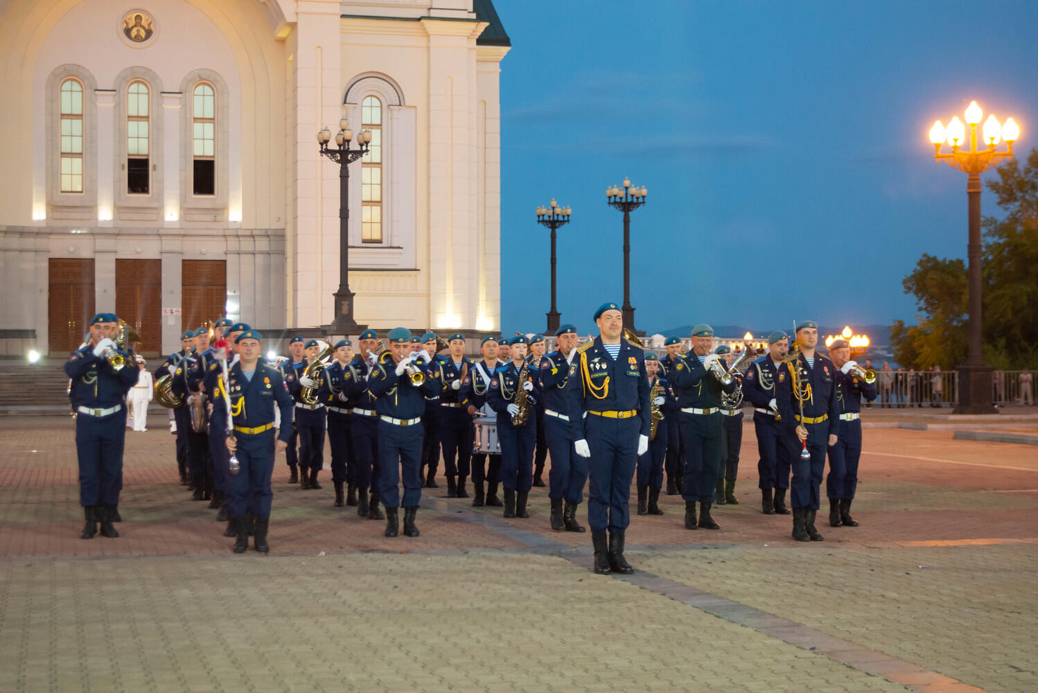 Эффектное дефиле-представление оркестров-участников «Амурских волн» прошло в Хабаровске