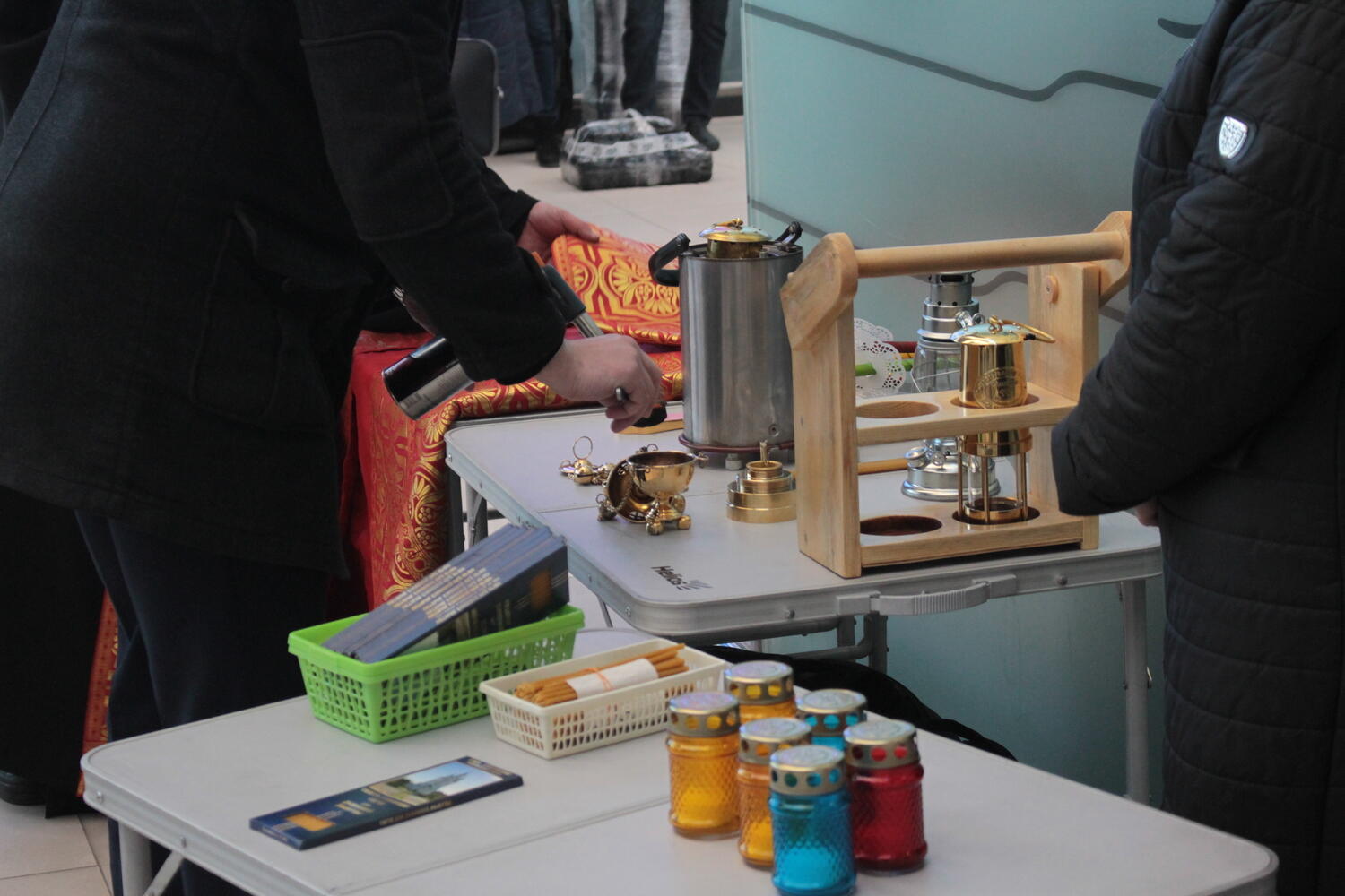 Затем лампаду с огнем доставили в Спасо-Преображенский кафедральный собор, где шло соборное богослужение, участие в котором принимали все настоятели храмов. Возглавил его митрополит Хабаровский и Приамурский Артемий.