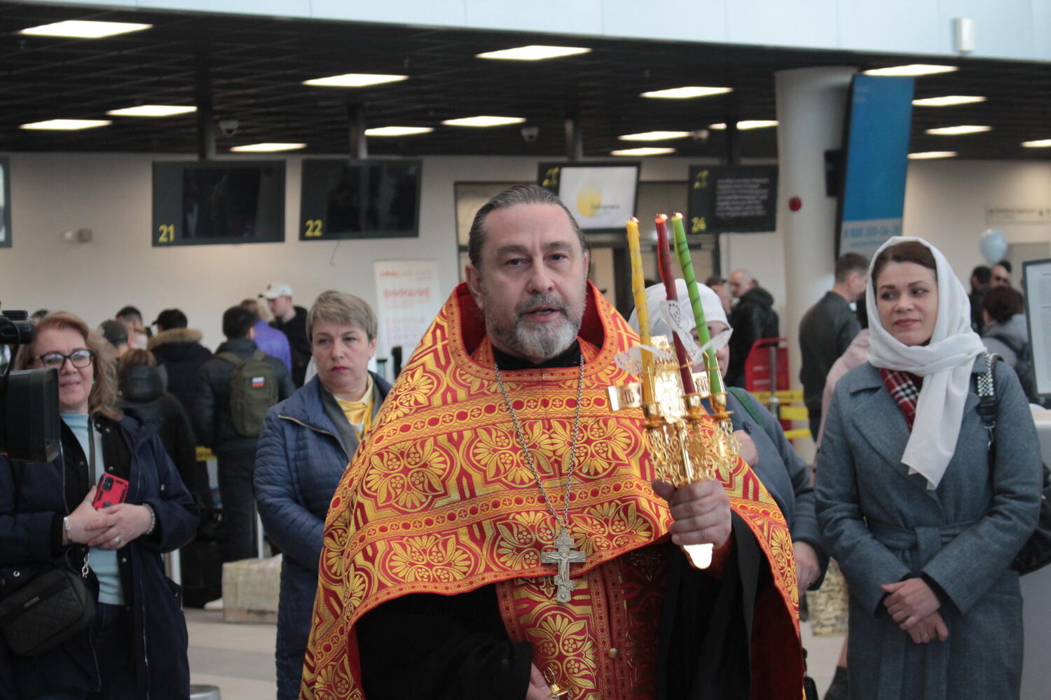 Первыми увидеть святыню, доставленную на дальневосточную землю из Москвы, смогли посетители хабаровского аэропорта. Рейс, на котором перевозили Благодатный огонь, прибыл рано утром. Священник, выполнявший ответственную миссию, отслужил благодарственный молебен прямо в воздушной гавани, после чего каждый смог взять себе частицу чудесного огня, сошедшего с небес в Храме Господня.