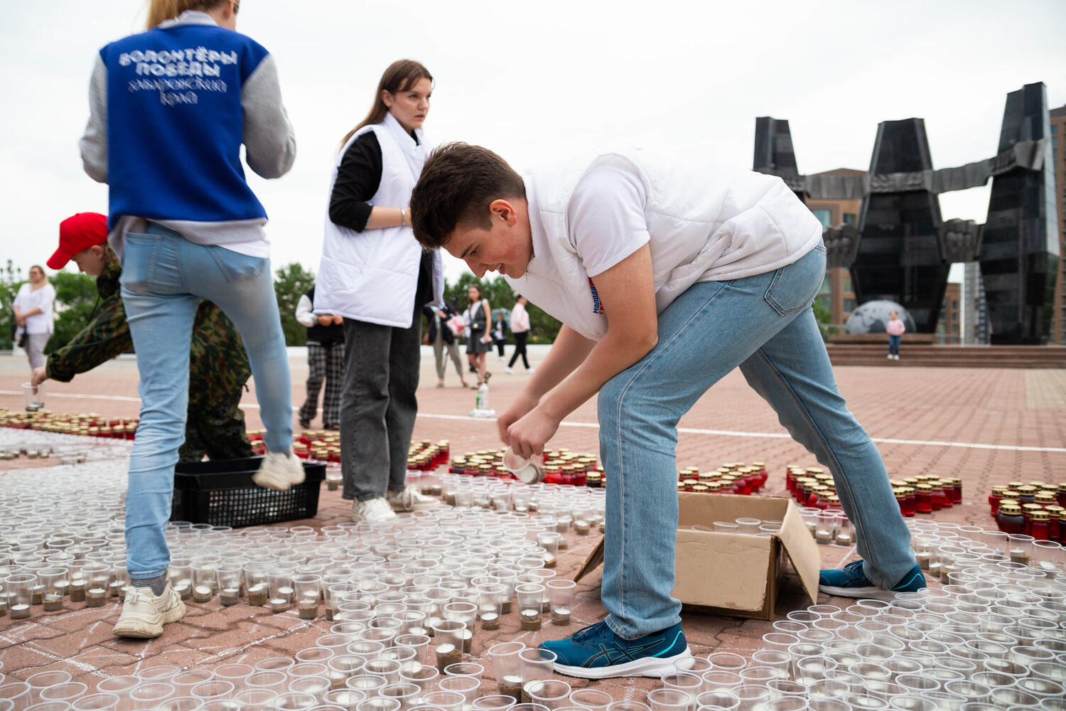 На площади Славы вечером 21 июня активисты Всероссийского общественного движения «Волонтеры Победы» и неравнодушные жители Хабаровска выложили «Огненную картину войны», посвященную событиям 1941-1945 годов. Из восьми тысяч свечей получилось масштабное изображение танка Т-34 и надпись «ХАБАРОVСК ПОМНИТ». Фото с акции в нашем фоторепортаже.