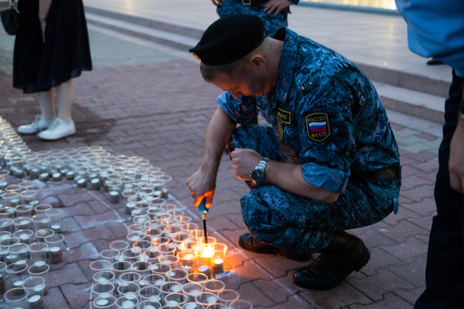На площади Славы вечером 21 июня активисты Всероссийского общественного движения «Волонтеры Победы» и неравнодушные жители Хабаровска выложили «Огненную картину войны», посвященную событиям 1941-1945 годов. Из восьми тысяч свечей получилось масштабное изображение танка Т-34 и надпись «ХАБАРОVСК ПОМНИТ». Фото с акции в нашем фоторепортаже.
