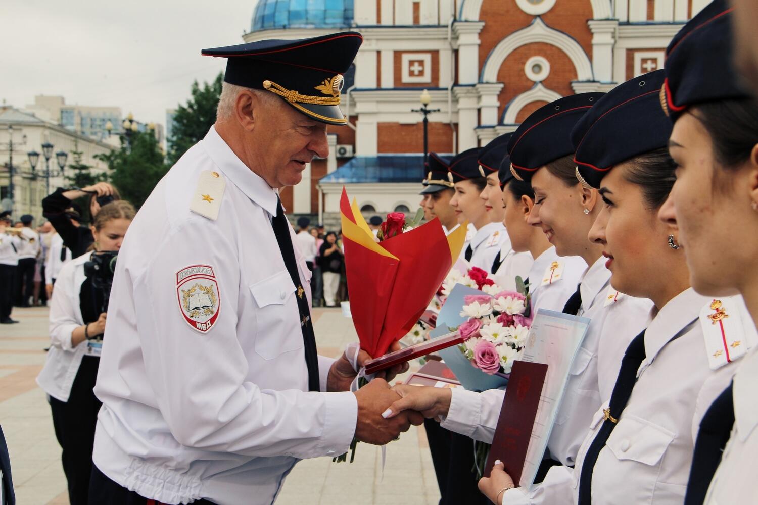 Свой выпускной отметили слушатели пятого курса ДВЮИ МВД на площади «Город воинской славы» в Хабаровске. Первыми долгожданные дипломы получили отличники - в их документах нет ни одной отметки «хорошо». За это они получили не только красные корочки, но и золотые медали. Следом торжественную церемонию прошли остальные выпускники. После, уже в статусе лейтенантов полиции, они прошли маршем по площади и закончили свой выпускной денежным дождем, крича «ура», пока монеты были в воздухе. Теперь уже бывших слушателей ждет их первая работа - уже через месяц все новоприбывшие полицейские будут распределены во все районы Хабаровского края.