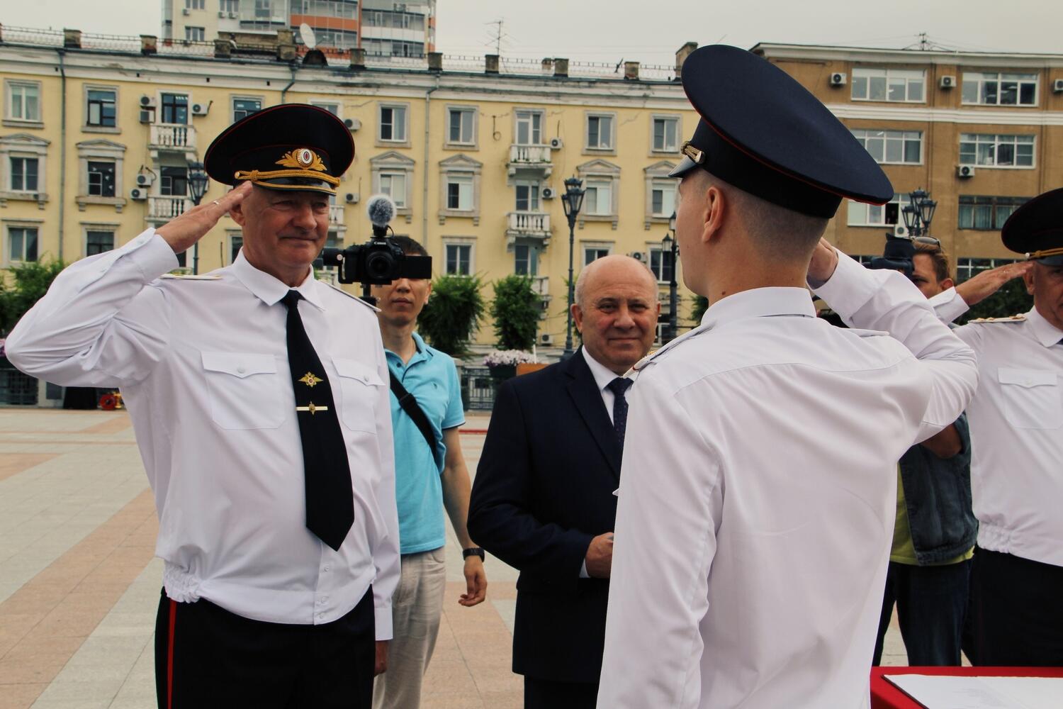 Свой выпускной отметили слушатели пятого курса ДВЮИ МВД на площади «Город воинской славы» в Хабаровске. Первыми долгожданные дипломы получили отличники - в их документах нет ни одной отметки «хорошо». За это они получили не только красные корочки, но и золотые медали. Следом торжественную церемонию прошли остальные выпускники. После, уже в статусе лейтенантов полиции, они прошли маршем по площади и закончили свой выпускной денежным дождем, крича «ура», пока монеты были в воздухе. Теперь уже бывших слушателей ждет их первая работа - уже через месяц все новоприбывшие полицейские будут распределены во все районы Хабаровского края.