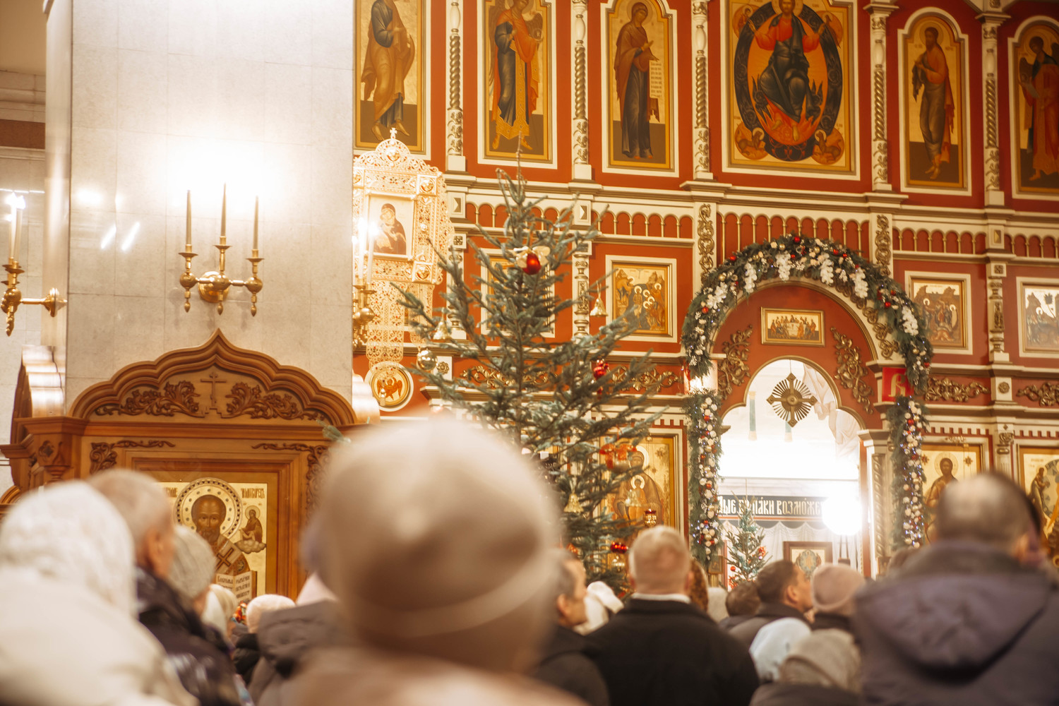 Уже на службе в храме запах хвои перемешался с ароматом ладана и восковых свечей, по всему кафедральному собору расставлены украшенные елочки, на улице, справа от входа, появился рождественский вертеп: волхвы и пастухи пришли к Святому семейству, чтобы поклониться Спасителю, лежащему в яслях.
