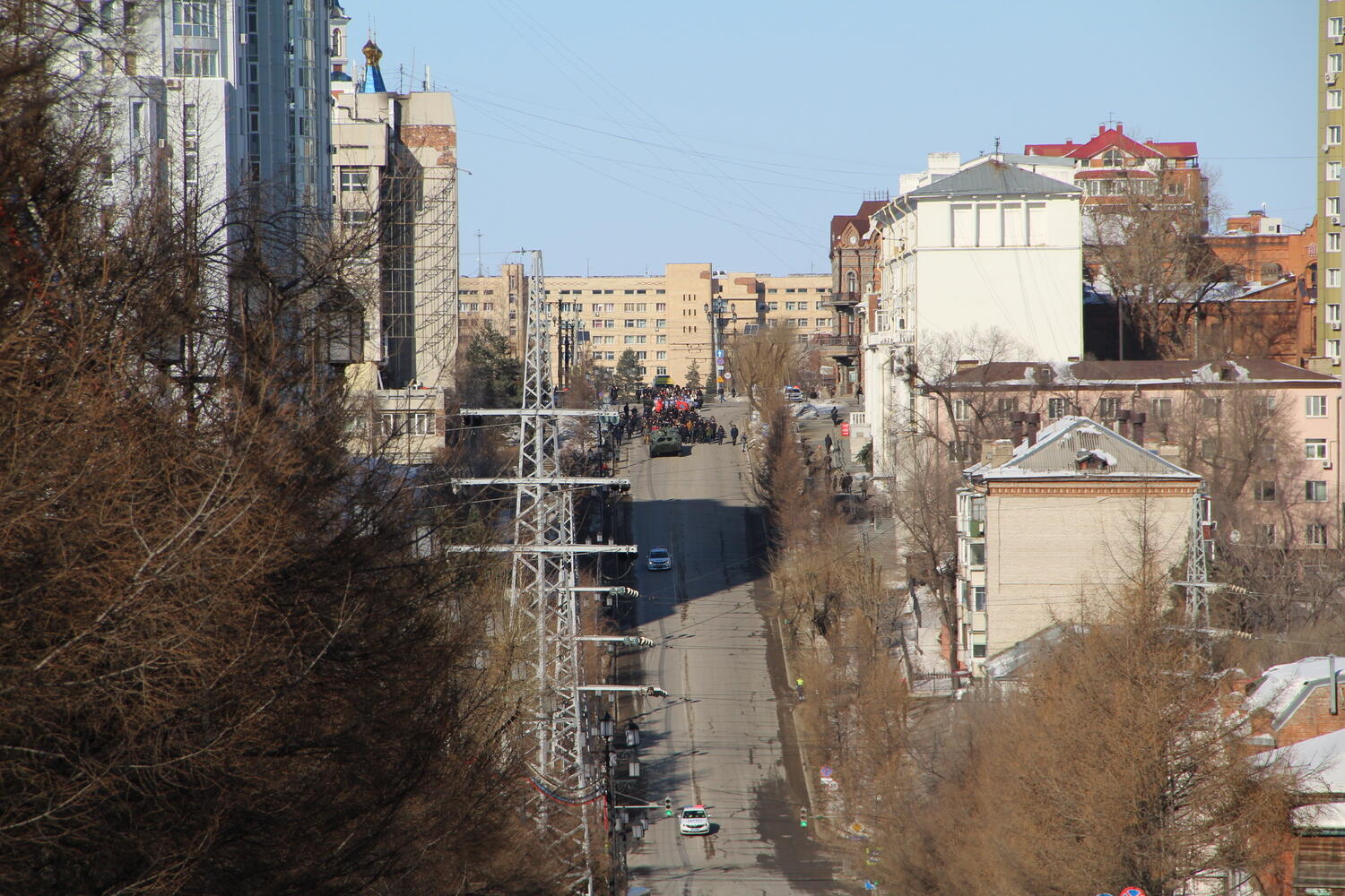 В Хабаровске, от Комсомольской площади до площади Славы, прошло традиционное шествие, посвященное Дню памяти россиян, исполнявших служебный долг за пределами Отечества, и 35-летию вывода ограниченного контингента советских войск с территории Республики Афганистан. Возглавил колонну БТР, за ним шли военнослужащие и неравнодушные горожане. Всего участие приняло около ста человек. После шествия все участники возложили цветы к мемориалу. Как прошло памятное мероприятие, смотрите в нашем фоторепортаже.