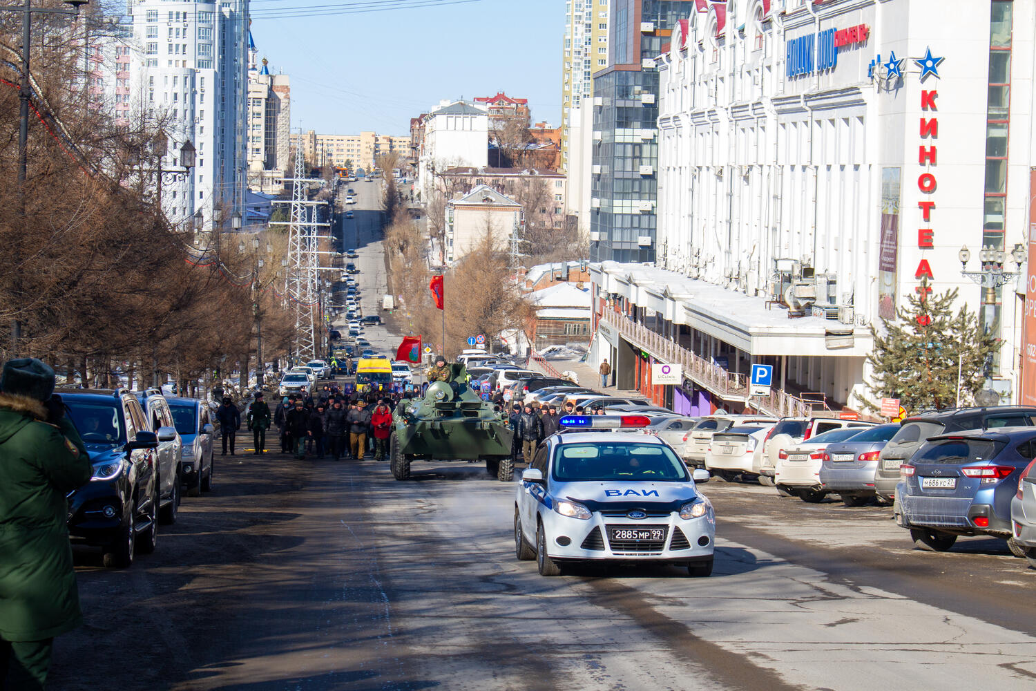 Сегодня по улицам краевой столицы прошла колонна памяти, возглавляемая бронетранспортером, затем состоялись возложения цветов к Вечному огню и Черному тюльпану. Смотрим фотографии, поминаем погибших воинов и отдаем им долг памяти.