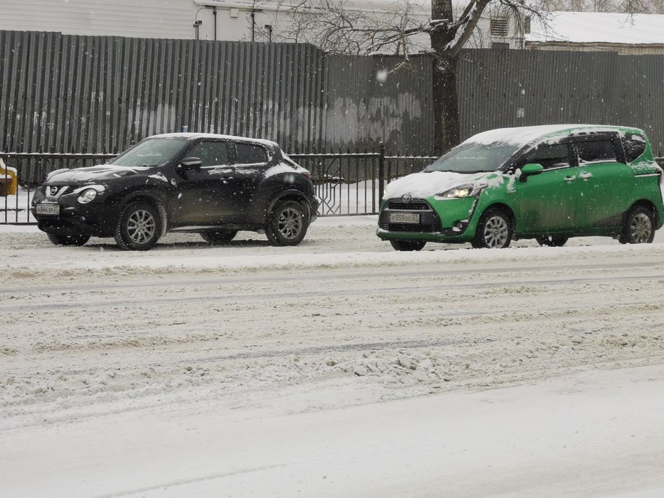 Снег, гололед и пробки в девять баллов сковали движение по улицам Хабаровска: фото