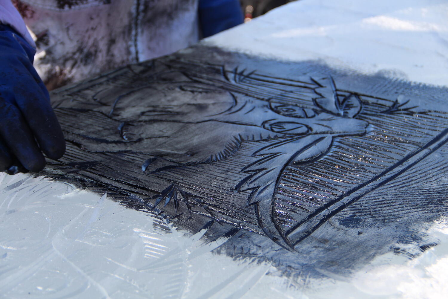 Необычные художники расположились около набережной Хабаровска. На улице еще держатся минусовые температуры, но тепло таким творцам не нужно, ведь они вырезают свои картины на льду. Сначала рисунок появляется на ледяной глыбе, а затем с помощью краски переносится на бумагу. Вдохновение скульпторы черпают из того, что им ближе всего по духу. Как проходит фестиваль и какие рисунки будут представлены в одном из музеев Хабаровска, можете увидеть в нашем фоторепортаже.