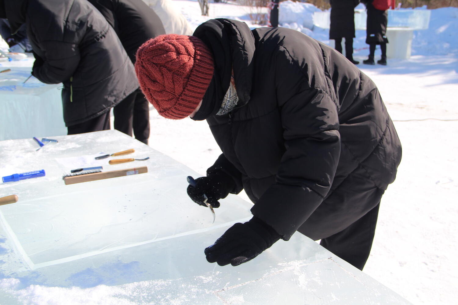 Необычные художники расположились около набережной Хабаровска. На улице еще держатся минусовые температуры, но тепло таким творцам не нужно, ведь они вырезают свои картины на льду. Сначала рисунок появляется на ледяной глыбе, а затем с помощью краски переносится на бумагу. Вдохновение скульпторы черпают из того, что им ближе всего по духу. Как проходит фестиваль и какие рисунки будут представлены в одном из музеев Хабаровска, можете увидеть в нашем фоторепортаже.