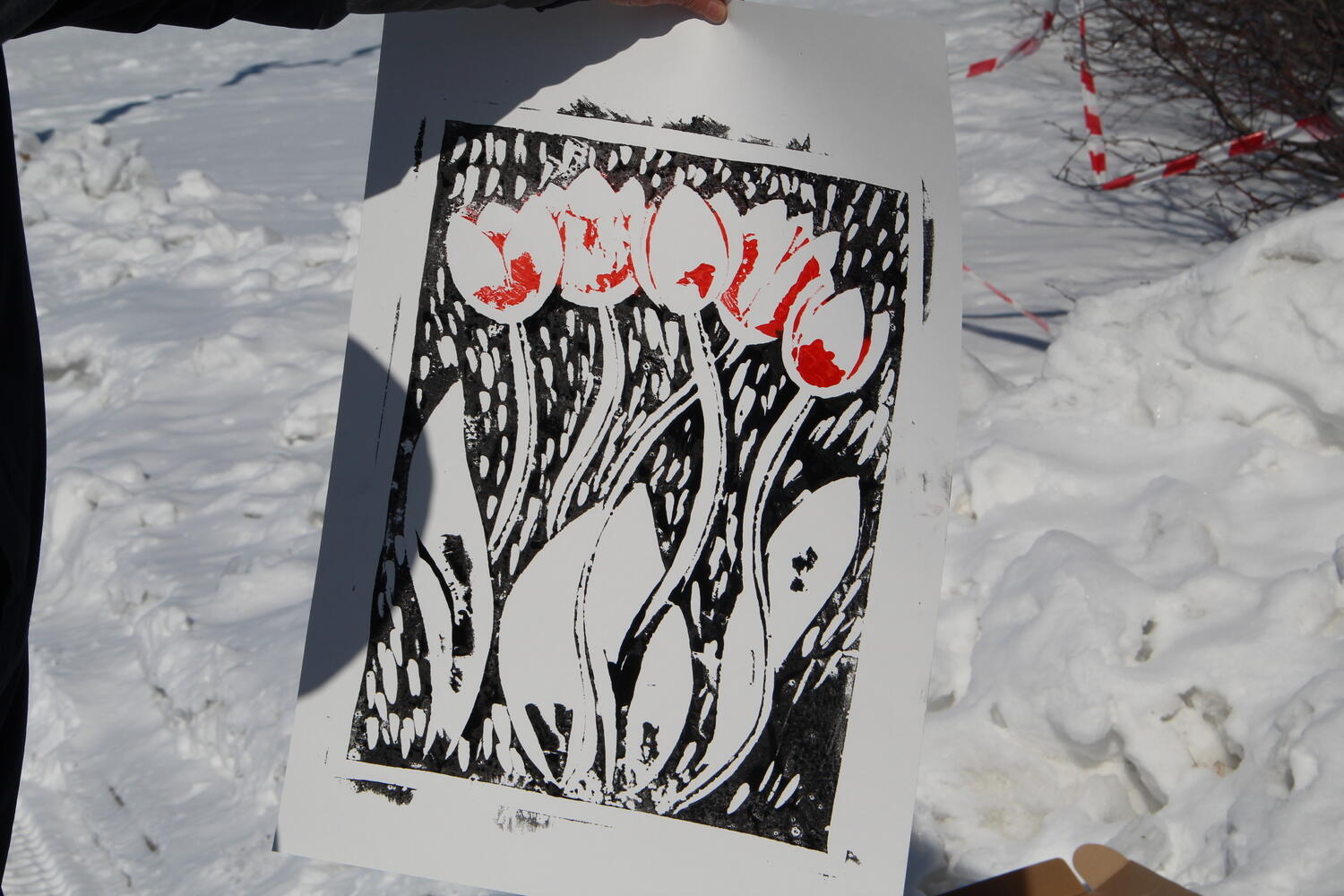 Необычные художники расположились около набережной Хабаровска. На улице еще держатся минусовые температуры, но тепло таким творцам не нужно, ведь они вырезают свои картины на льду. Сначала рисунок появляется на ледяной глыбе, а затем с помощью краски переносится на бумагу. Вдохновение скульпторы черпают из того, что им ближе всего по духу. Как проходит фестиваль и какие рисунки будут представлены в одном из музеев Хабаровска, можете увидеть в нашем фоторепортаже.