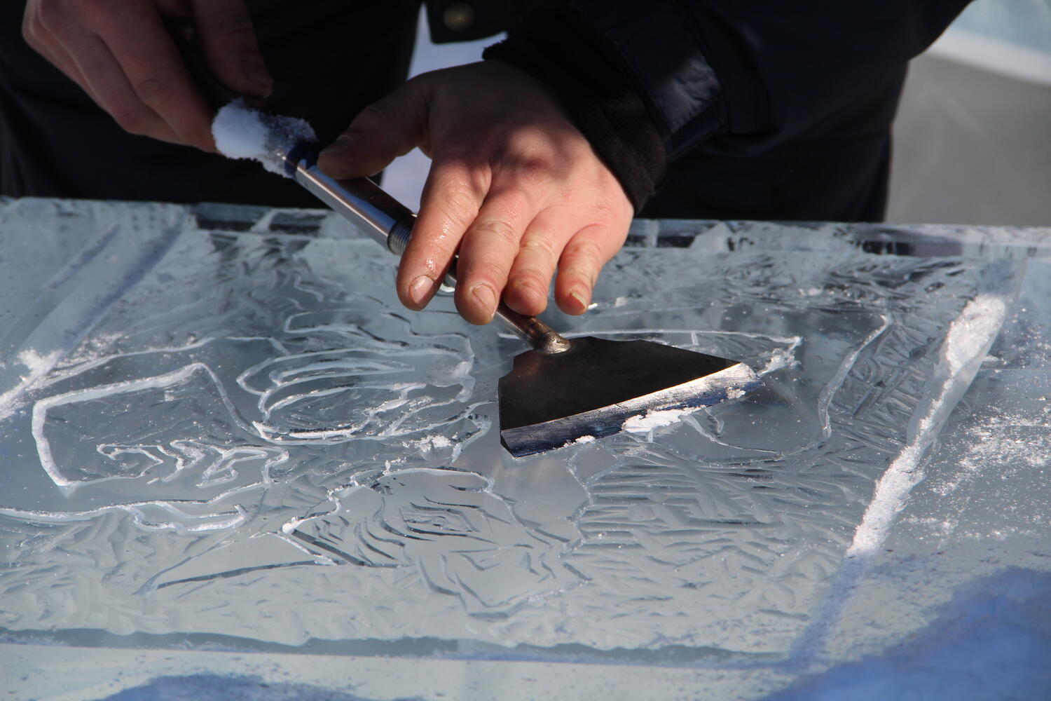 Необычные художники расположились около набережной Хабаровска. На улице еще держатся минусовые температуры, но тепло таким творцам не нужно, ведь они вырезают свои картины на льду. Сначала рисунок появляется на ледяной глыбе, а затем с помощью краски переносится на бумагу. Вдохновение скульпторы черпают из того, что им ближе всего по духу. Как проходит фестиваль и какие рисунки будут представлены в одном из музеев Хабаровска, можете увидеть в нашем фоторепортаже.
