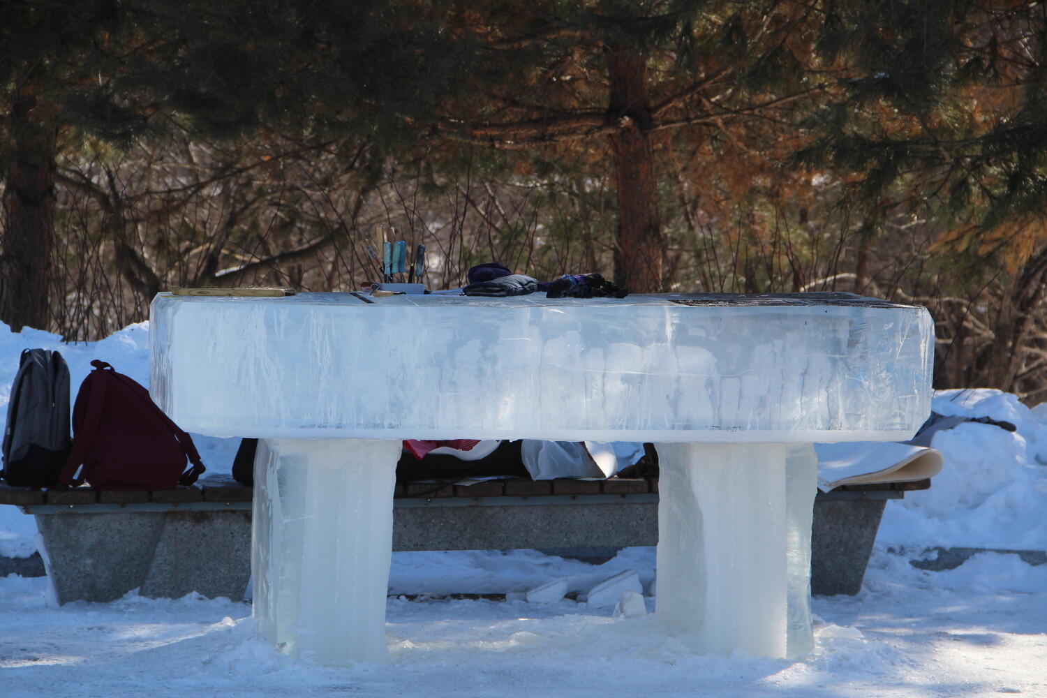 Необычные художники расположились около набережной Хабаровска. На улице еще держатся минусовые температуры, но тепло таким творцам не нужно, ведь они вырезают свои картины на льду. Сначала рисунок появляется на ледяной глыбе, а затем с помощью краски переносится на бумагу. Вдохновение скульпторы черпают из того, что им ближе всего по духу. Как проходит фестиваль и какие рисунки будут представлены в одном из музеев Хабаровска, можете увидеть в нашем фоторепортаже.