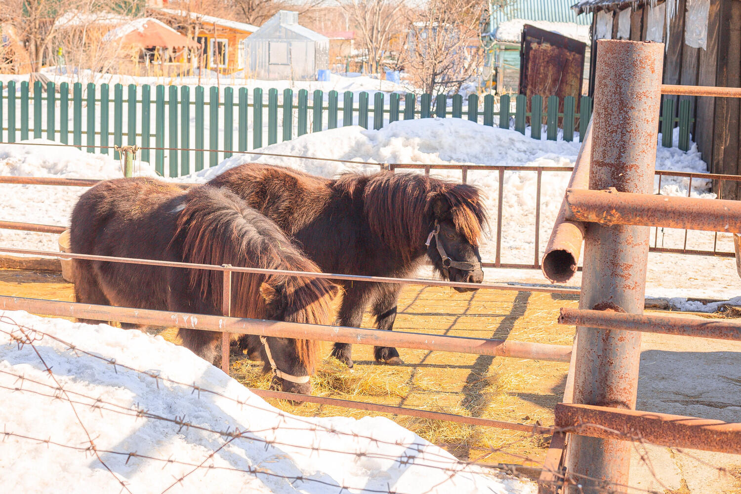 Наверняка вы встречали в центре Хабаровска пони. Маленьких лошадок чаще всего можно увидеть на набережной и площадях, в парках, скверах и на городских прудах. Сегодня мы встретили пони в их доме - в частном секторе микрорайона «Авиагородок». Весенняя прогулка привела к конюшне неподалеку от садоводческого общества «Пионер-3». Лошадки тихо жевали сено, пили воду и грелись на солнце.