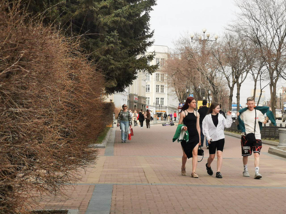 Прошлые выходные в Хабаровске выдались нетипично жаркими для апреля. Синоптики зафиксировали рекордно высокую температуру 14 апреля - до плюс 22,7 градуса. Также тепло было и в понедельник - на улицах города можно было встретить жителей, одетых совсем не по-весеннему. Девушки оголяли плечи и красовались в коротких платьях. Парни гуляли по городу в шортах и майках.