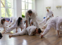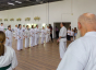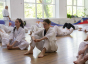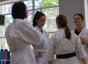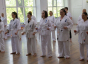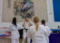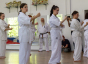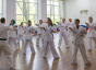 Свой первый экзамен мамочки сдали 8 марта - начальные кю им вручили в честь праздника. А вот сейчас, чтобы подняться ступенькой выше, женщинам придется постараться. Скидок уже никто делать не будет. В программе ката, проверка наработанного арсенала, тест на физическую подготовку. Сложно, но выполнимо. Тем более что наставники хоть и строгие, но справедливые.