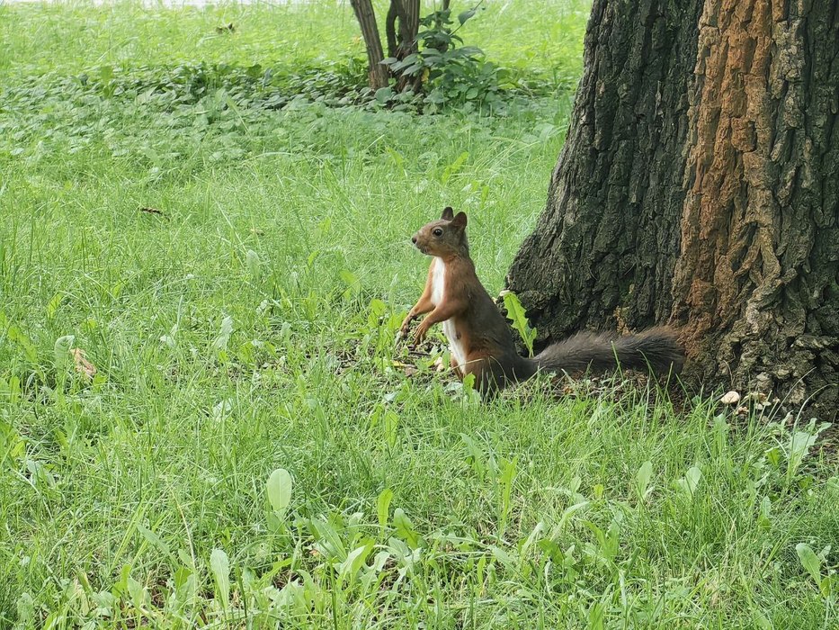 В сквере Семьи, любви и верности, расположенном на набережной Хабаровска, есть свои пушистые жители. Одна из них, не смотря на большое количество людей из-за Дня физкультурника, отправилась на прогулку. И именно это маленькое путешествие удалось запечатлеть горожанам. Пушистая и сама была не прочь показать себя, замирая в разных позах. Благодаря этому люди получили милые кадры, а некоторые даже смогли пообщаться с жителем сквера, так как зверек сам к ним подбегал.