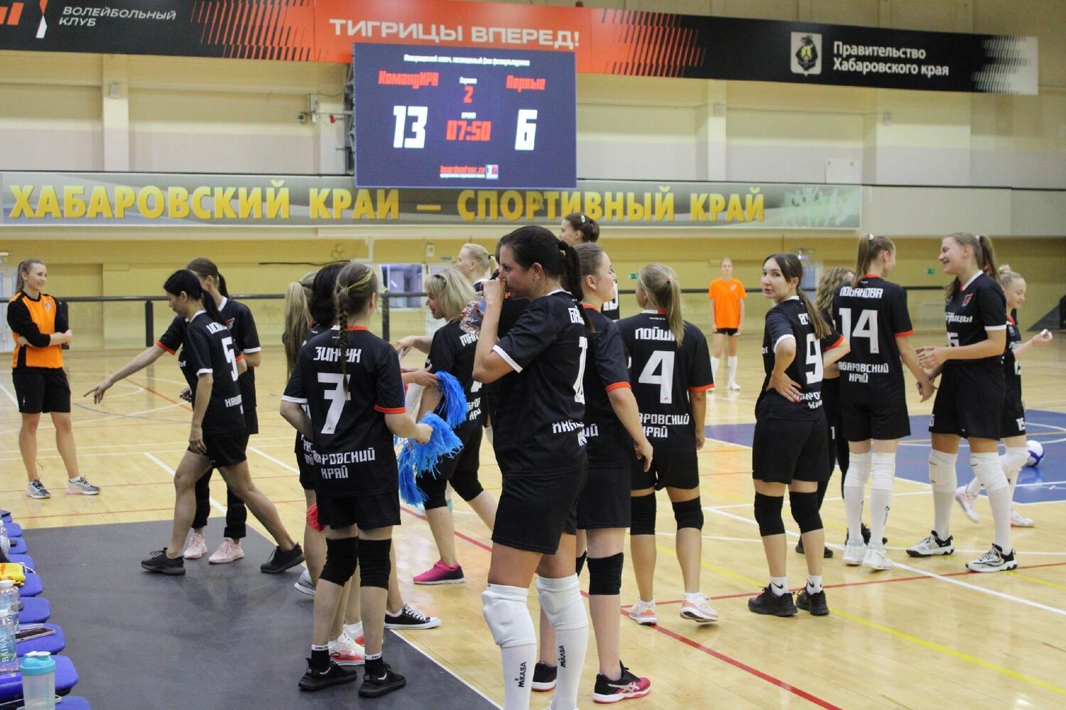 По договоренности одновременно на площадке присутствовали по три игрока «Амурских тигриц» и сотрудницы правительства Хабаровского края в каждой команде. К слову сказать, капитаном «оранжевых» была первый заместитель председателя правительства Хабаровского края Мария Авилова. Борьба получилась жаркой, и если первая партия осталась за «оранжевыми», вторая — за «черными».