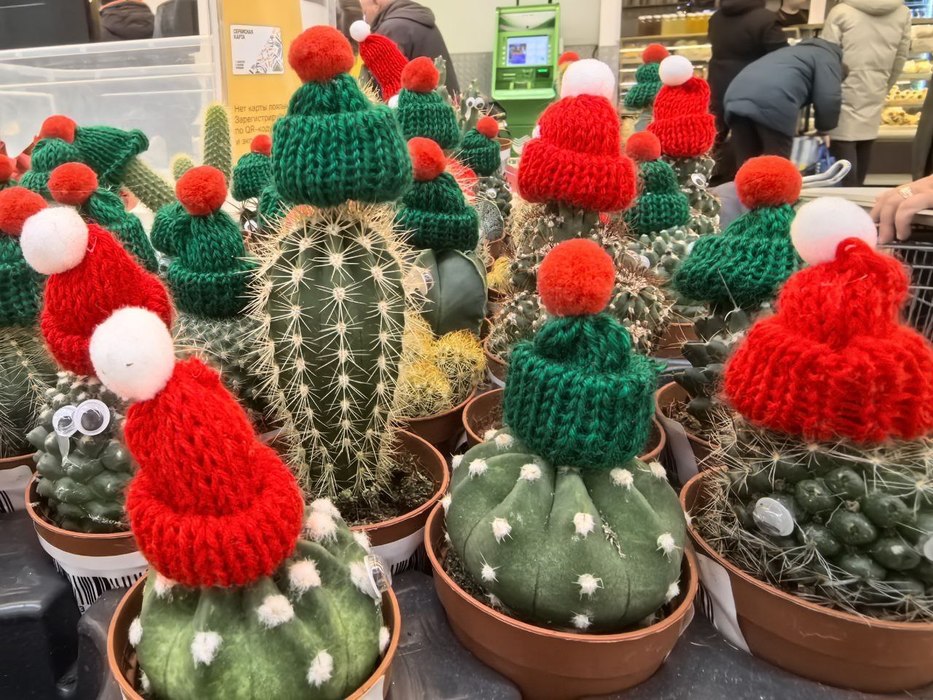 В Хабаровске можно найти множество новогодних товаров, но наверняка никто не ожидал увидеть среди кактусы. И в этом году они тоже дарят праздничное настроение своим милым видом! Каждое растение уникально, ведь у каждого своя форма, своя шапочка и свои глазки, грустные, любопытные или радостные. Вместе с кактусами можно увидеть маленькие будущие елочки в праздничной упаковке, которые когда-нибудь станут большими деревьями. А вы бы хотели приобрести новогодний кактус в шапочке? Расскажем по секрету – корреспондент «МК в Хабаровске» приобрел.