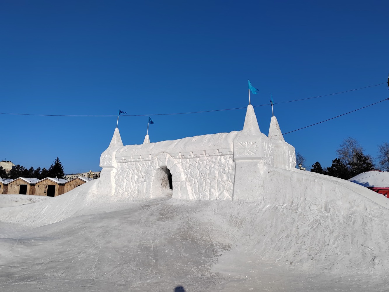 Снежные фигуры, елки и трамвай желаний: фото из новогоднего Комосомольска-на-Амуре