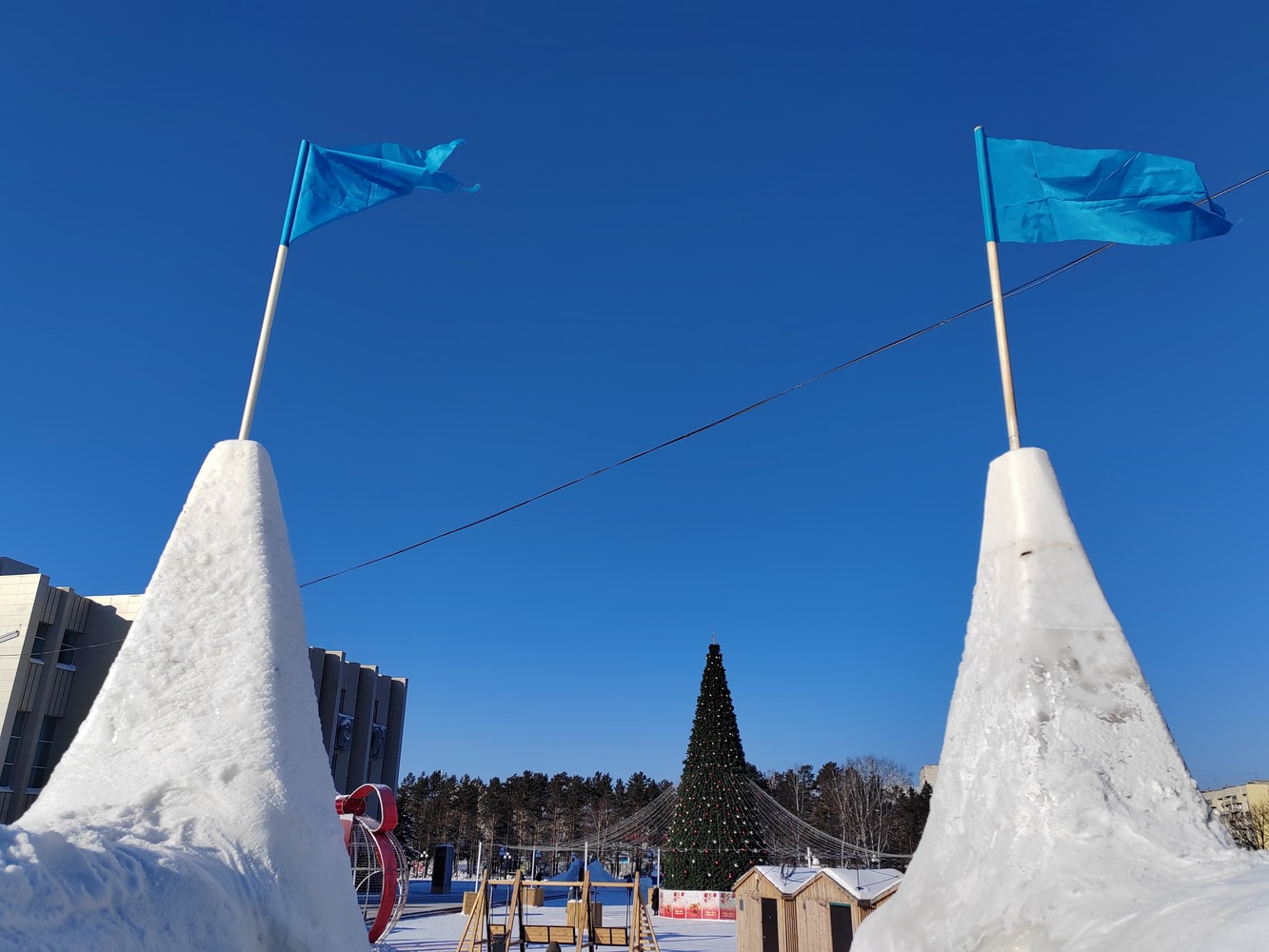 Снежные фигуры, елки и трамвай желаний: фото из новогоднего Комосомольска-на-Амуре