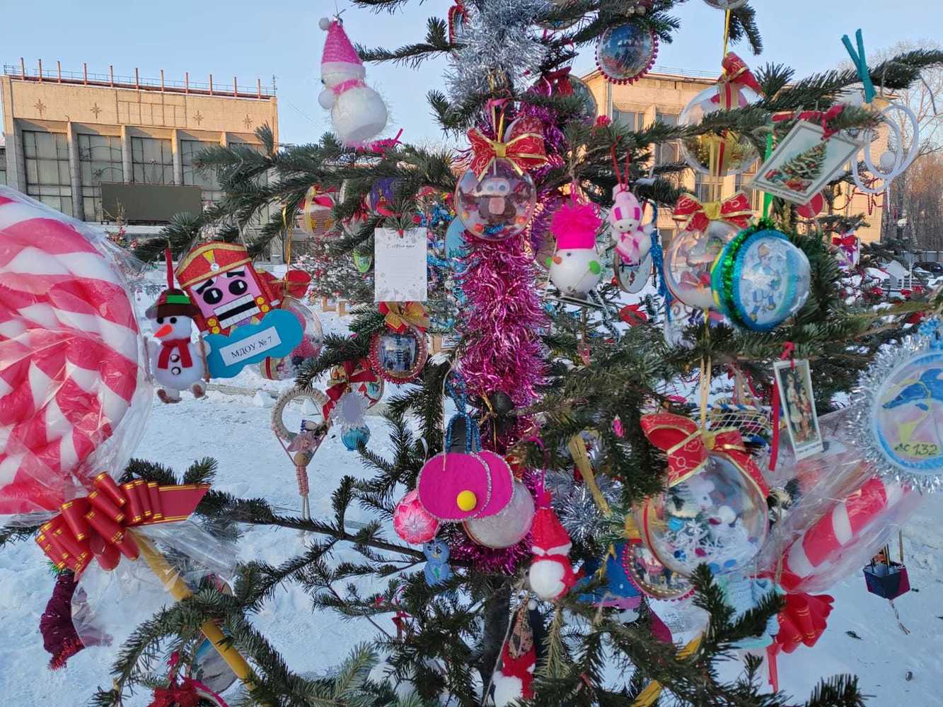 Снежные фигуры, елки и трамвай желаний: фото из новогоднего Комосомольска-на-Амуре