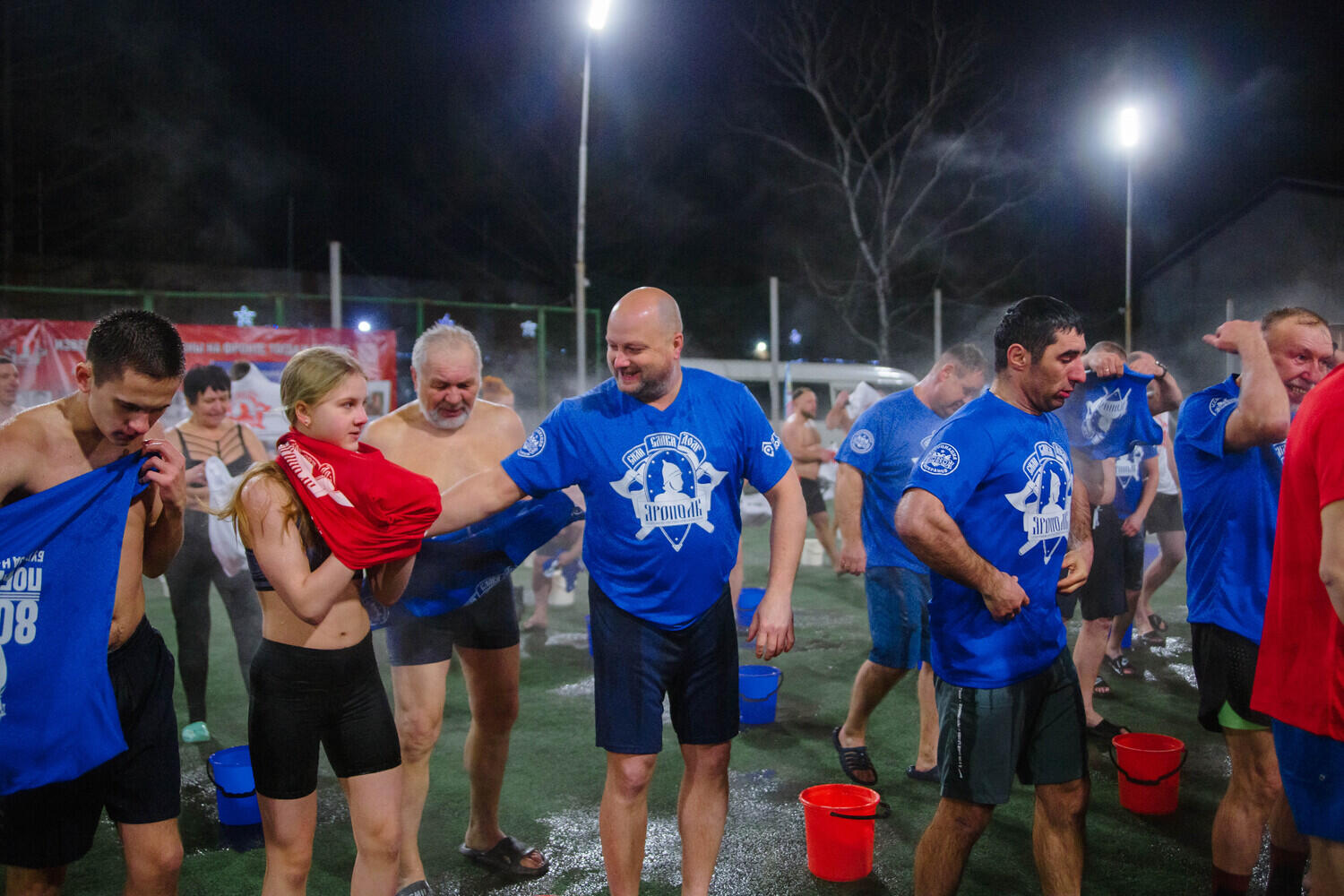 Бодрые и мегапозитивные хабаровчане массово облились холодной водой в – 12 градусов: фото