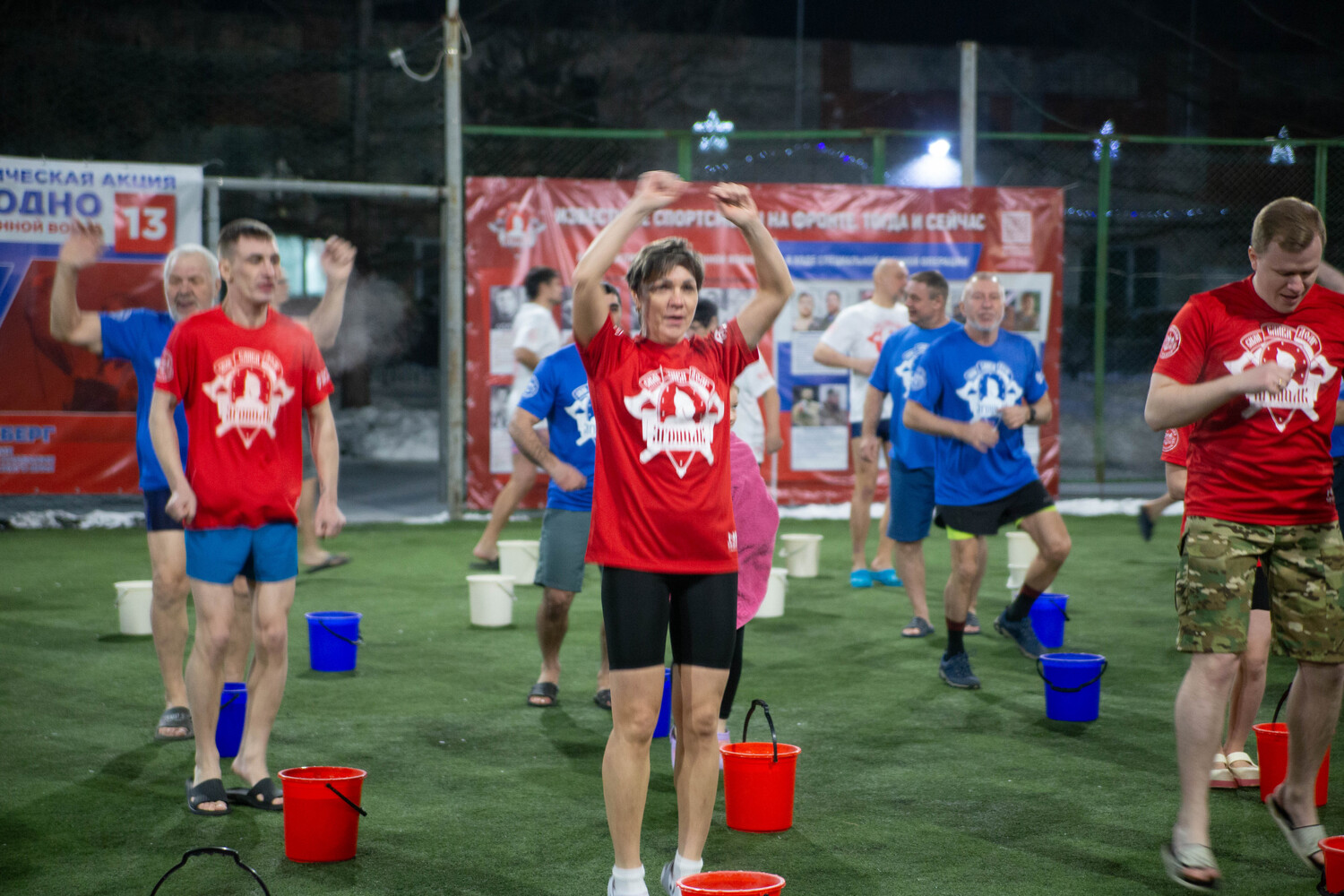 На стадионе «Юность» собралось 70 активных хабаровчан. Прежде чем начать, прошла короткая тренировка, инструктаж и подготовка к мероприятию в поддержку страны. А в завершении акции всех участников ждали общая фотосессия и согревающий чай. Фото смельчаков на самой здоровой акции - смотрите в нашем ярком фоторепортаже.