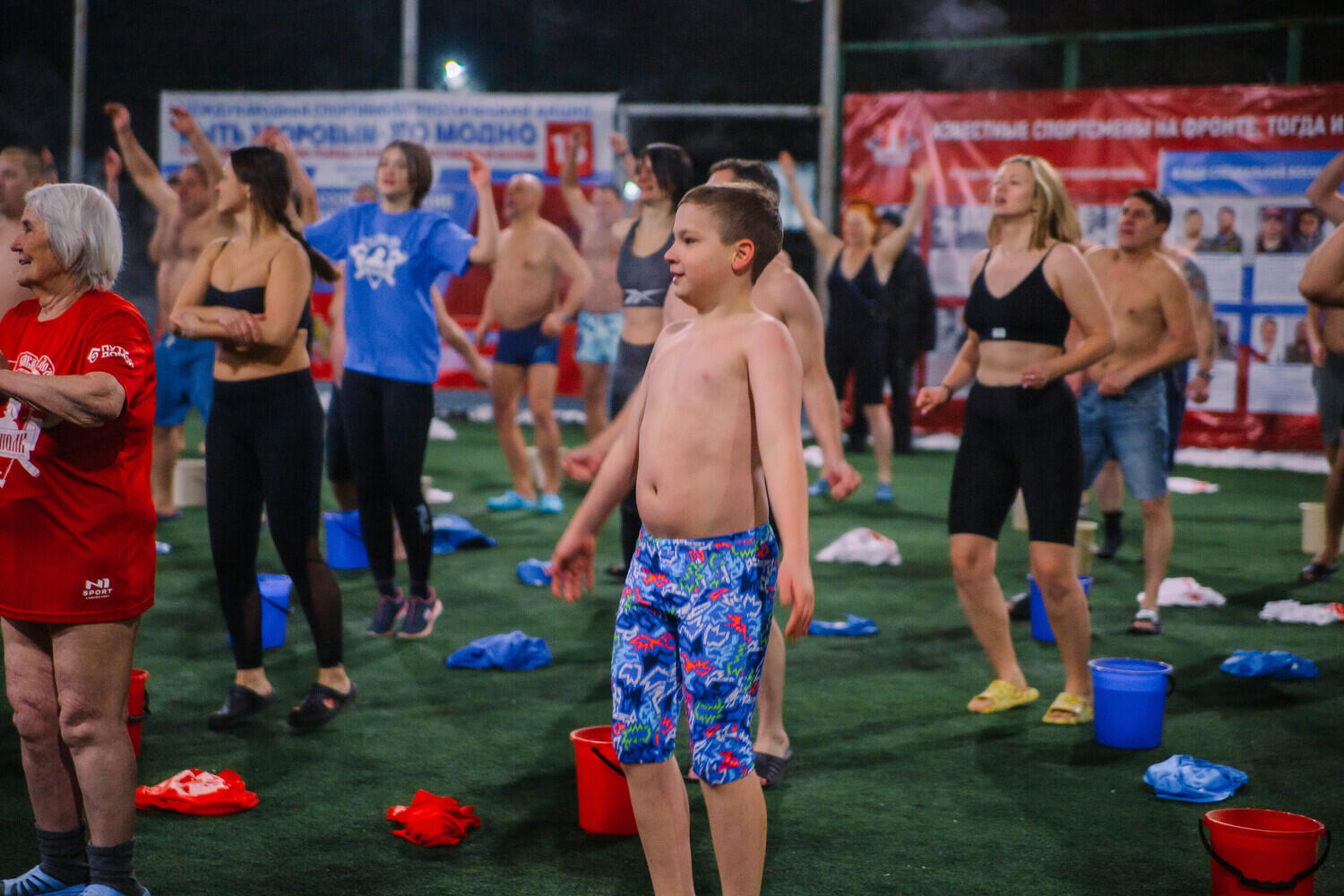 На стадионе «Юность» собралось 70 активных хабаровчан. Прежде чем начать, прошла короткая тренировка, инструктаж и подготовка к мероприятию в поддержку страны. А в завершении акции всех участников ждали общая фотосессия и согревающий чай. Фото смельчаков на самой здоровой акции - смотрите в нашем ярком фоторепортаже.