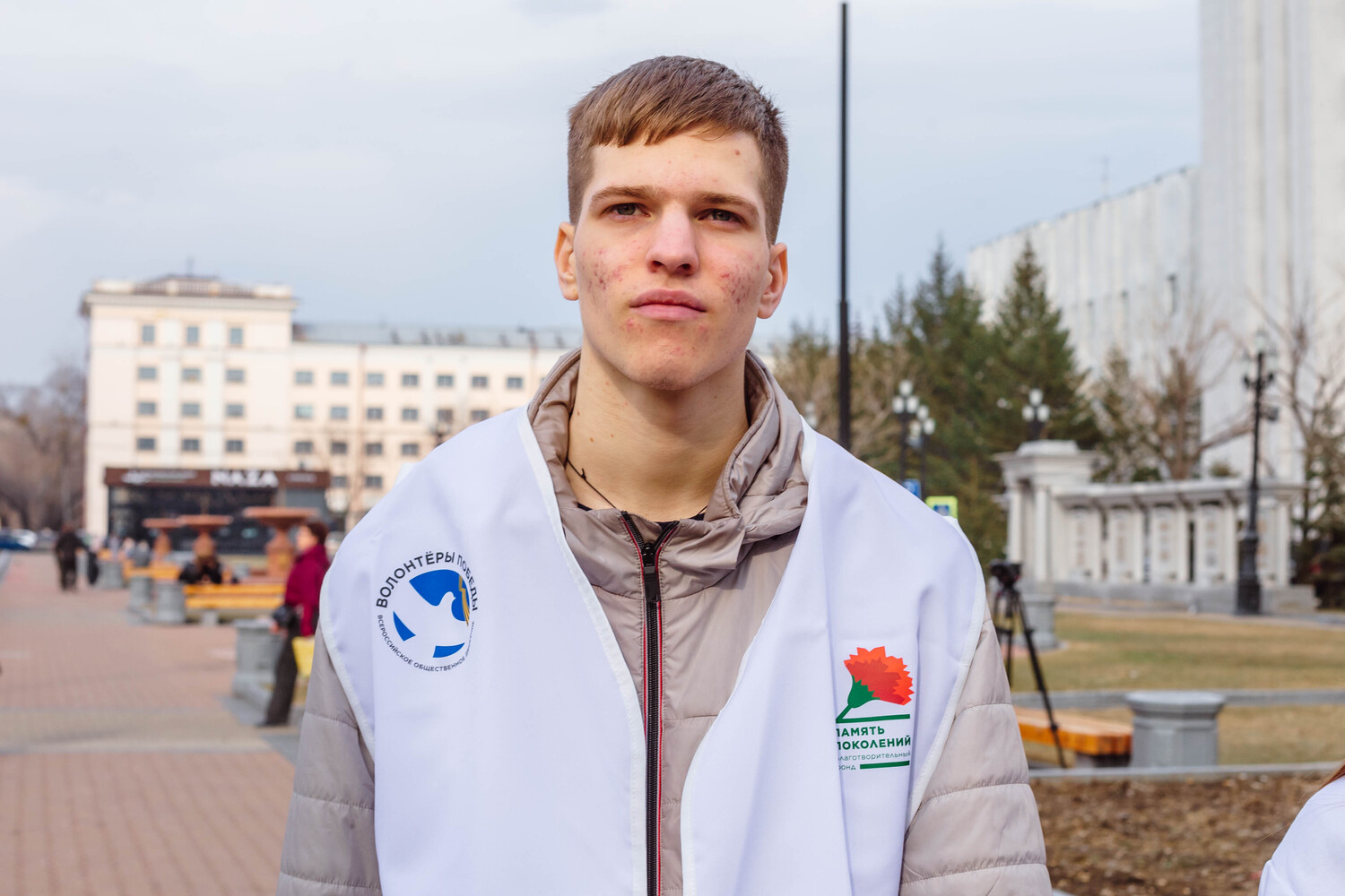 Тысячи значков раздали волонтеры на акции «Красная гвоздика» в центре Хабаровска: фото
