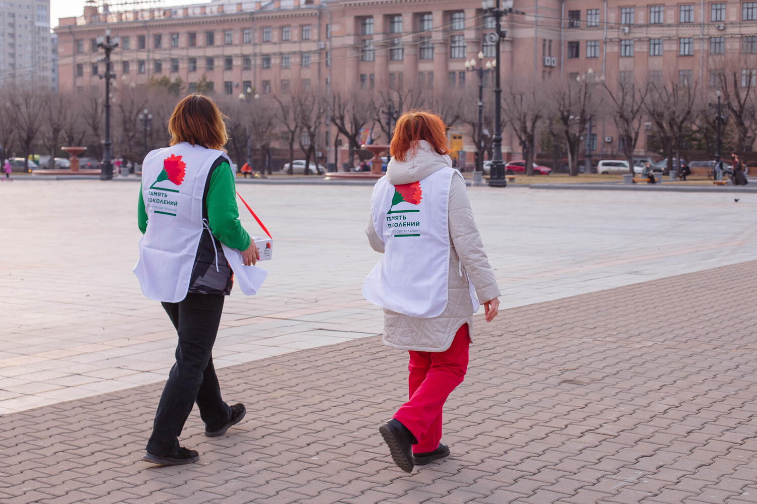 В Хабаровске и по всему краю сегодня состоялась акция «Красная гвоздика». На главной площади, добровольцы предлагали жителям купить значок, выполненный в виде гвоздики. Мероприятие будет продолжаться еще два дня, организаторы надеются собрать свыше 150 тысяч рублей. В 2023 в Хабаровском крае в этой акции участвовали «Волонтеры Победы» и «Молоды душой», и совместными усилиями им удалось собрать 159,7 тысяч рублей. Собранные средства, через благотворительный фонд «Память поколений», направили на оплату медицинских операций, приобретение современных слуховых аппаратов, инвалидных колясок и медикаментов для ветеранов ВОВ.