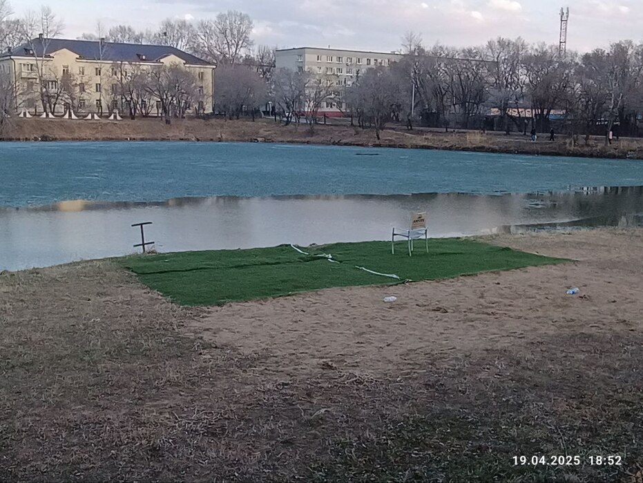 На озере Рица в Южном районе Хабаровска еще можно увидеть лед, точнее его остатки. Осколки ледяного покрытия шуршат, соприкасаясь друг с другом, но, кажется, абсолютно не мешают ондатре, которая уже плавает от одной норки к другой. Обитательница озера не стала позировать на камеру и при первых же попытках снять ее скрылась под водой. А в озере вместе с частичками льда плавает еще и мусор, оставленный отдыхающими и даже конструкция, которой был заколочен вход в заброшенное здание рядом с озером. То ли этот эрзац двери кто-то снял по собственной инициативе, то ли постройку решено расконсервировать – пока не ясно. Впрочем, красота озера в лучах заката перетянула внимание на себя.